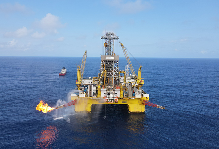 2017年5月10日,“藍鯨1號”在南海神狐海域試采天然氣水合物點火成功;2017年5月18日,國土資源部部長姜大明站在“藍鯨1號”上宣布:“中國首次海域天然氣水合物試采成功!”當日,中共中央、國務院對海域天然氣水合物試采成功發來賀電。自此,中國成為全球領先掌握海域天然氣水合物試采技術的國家,這對于我國能源安全保障、能源結構優化具有里程碑意義。