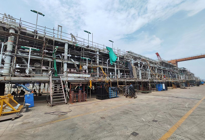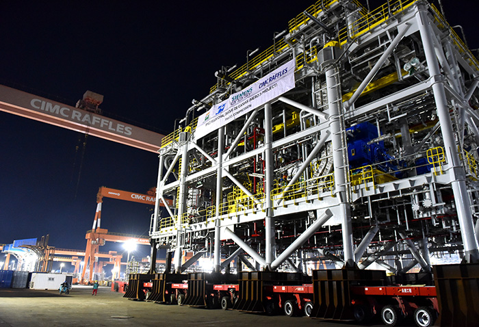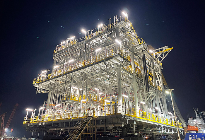 陵水(深海一號)半潛式儲油平臺是全球首個十萬噸級儲卸油半潛平臺,總重5.3萬噸,最大排水量11萬噸,擁有全球最大的桁架式半潛式上部組塊,也是國內(nèi)首個1500米水深半潛式生產(chǎn)平臺。該平臺主要用于油氣加工、儲存和傳輸。最大儲油容量近2萬立方米,滿足30年不進(jìn)塢要求。“深海一號”氣田投產(chǎn)后,每年將向廣東、香港、海南等地供應(yīng)30億立方米天然氣。